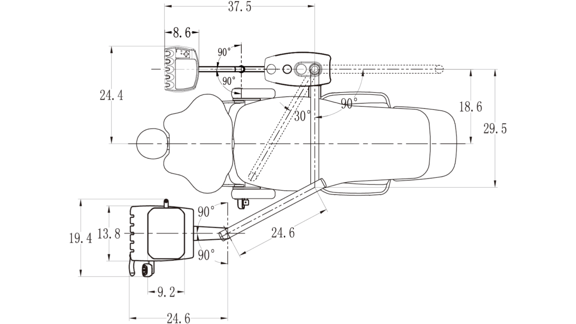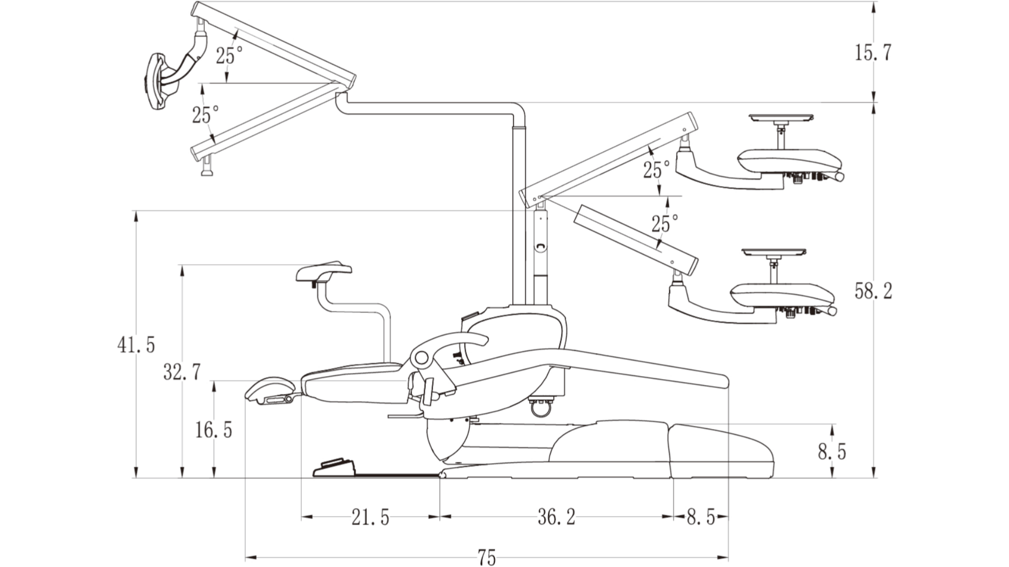 Master on/off switch, 1 doctor syringe, Wet/Dry foot control,